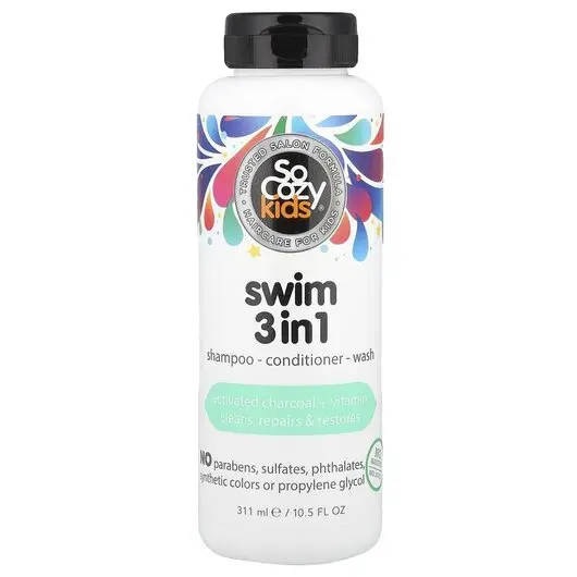 Пірнай! My swim 3 в 1 очищає та відновлює пошкодження волосся, спричинені хлором та морською сіллю. Активоване вугілля видаляє зелені тони, кальцій та хлор, а антиоксиданти та вітаміни відновлюють вологу, роблячи волосся м’яким та шовковистим.